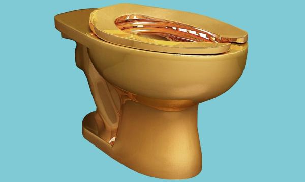 对于世人来说,它真的是黄金的,这点非常重要。艺术家欢迎参观者走进卫生间鉴赏一下这件可以让你闪瞎眼的黄金马桶,但是,只有当人们坐在上面,回应自然的呼唤时,它才真正成为了艺术的一部分。