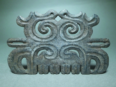 与已出土的红山玉相比,黑皮玉更具有史前文化气息,造型亦丰富多变。前者制作工艺水准基本趋于一致,区别不是很大,但黑皮玉的层次差别触目可辨,尤其是黑皮玉佩所表现出的那种精细和精致程度,可以想象到使用者的等级差别和不同需求。以玉佩为例,即使与没有字符的黑皮玉佩相比,也要比红山玉佩更薄更规整,特别是内外透雕边缘皆为双开锋刃,且不说划可裁纸,光是对称开刃这一点就要耗费多少工匠心力。黑皮之下,小到巴掌大的玉佩和宽逾50厘米的超大玉佩,无一不是如此。为什么一定要这么设计?作用又是什么?难怪央视《黑皮玉之谜》的编导朱燕妮对张一平说:“片子拍完了,反倒觉得有关黑皮玉的谜更多了!”