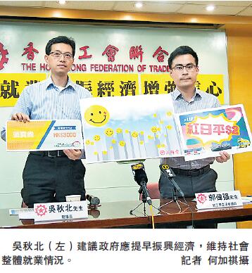 【香港商報網訊】記者何加祺報道:工聯會一項調查發現,對經濟、就業前景的悲觀情緒正籠罩著打工仔。有近半受訪者表示今年沒有加薪,亦有近六成人預期公司未來一年有機會裁員或縮減人手;當中旅遊業、飲食業的情況更為嚴峻。工聯會理事長吳秋北表示,香港最近所發生的某些行為嚴重破壞香港的形象,令本港經濟「雪上加霜」,建議政府應提早振興經濟,包括重建香港「好客之都」形象,吸引世界各地旅客來港旅遊等。