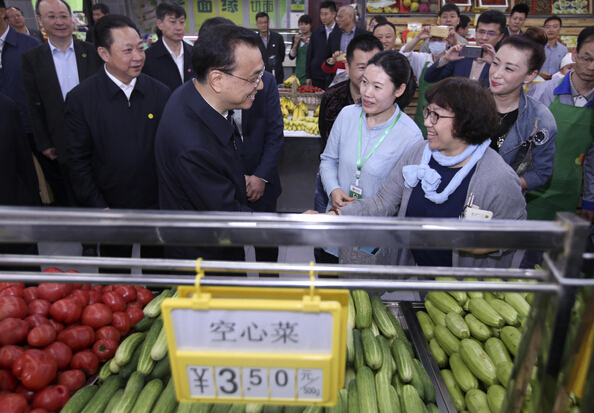 在成都益民菜市,李克強與群眾交流,了解市場供應、農藥殘留檢測等情況,對這里通過“互聯網+”搭建農產品直銷大平臺、降低成本表示贊許。他說,要切實落實“菜籃子”市長負責制,保證市場供應,嚴守食品安全,保障困難群眾基本生活。
