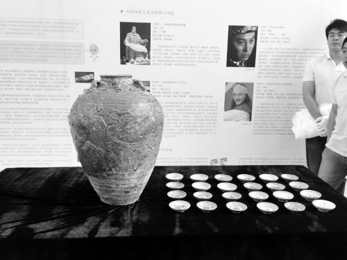 4月25日,辽宁省博物馆特别举行了展品开箱仪式,先展出了两件宝物。首先被工作人员开箱展出的酱釉堆塑凤纹六狮系瓮是我国目前体积最大的凤纹系瓮,这件凤纹系瓮上面的贴塑形象都是典型的明代陶瓷器上的形象,出水时瓮内装有漳州窑系青花碟254件、玉壶春瓶5件。据悉,当时海洋运输为了节省空间、装载更多货物,会把小件的器物放到大型的器物里。这种“大件套小件”方式虽然可以装载更多货物,但也增添了货船超载而下沉的风险。
