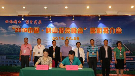 中新網昆明4月28日電(王祎)“2016中國·峨山投資峰會”28日在昆明舉行。云南峨山彝族自治縣的28個重點項目參加招商,26家省級異地商會代表、近200家企業、300余人參加峰會。最終,9個項目成功簽約,簽約資金約74.95億元。