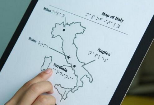 據媒體報道,這項新發明名為可觸摸墨水,加熱后這些墨水就會自動凸起,變成盲人能用手指感受到的盲文。