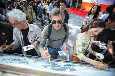 新京报讯 (记者程媛媛)昨日下午,“手绘京城·外国漫画家画北京活动”在什刹海会馆举行开幕仪式。来自7个国家的10位漫画家即兴集体创作了一幅别具风格的漫画,这也是他们呈现给京城的第一幅作品。