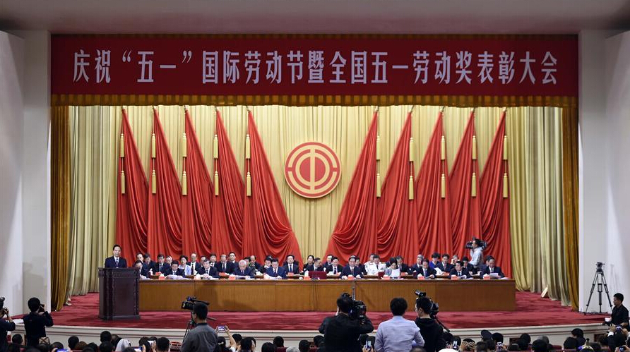 4月29日,慶祝“五一”國際勞動節暨全國五一勞動獎表彰大會在北京人民大會堂舉行。 新華社記者 陳曄華 攝