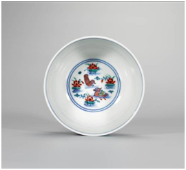 成窑早期斗彩佳器,体现了志在全面恢复与摹仿宣德故物的特点,是次拍品成窑斗彩满池娇墩式碗正是此段特殊历史之见证,当属成窑早期之佳作。