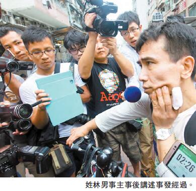 中年男事主姓林,左手食指受伤,其单车车尾自行安装一套音响连喇叭,单车上另有一个木盒装有大量电池;在现场所见,估计电池已接驳电线供电给音响设备。事主事后声称,该批电池早前在葵涌圳边街拾获,部分转赠朋友,部分自用。事发前他在葵芳站上车打算前往中环找律师,因列车煞掣时他突然失去重心,以致手臂拨到木盒,未几木盒便传出爆炸声继而冒烟,事主称那一刻有些害怕,又形容「劲过枪声!」