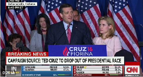 克魯茲在宣布退選時表示,“我們做了可以做的一切,但是選民們把票投給了另一個人。”在簡短的退選宣言中,克魯茲既沒有恭喜川普成為‘推定’候選人,也沒有像自己的選民發誓賭咒說“一定會回來的”之類的話。同時他再次拒絕對“是否支持川普”的問題上表態。不過周二他曾經在公開場合指責川普是個“病態的騙子”。