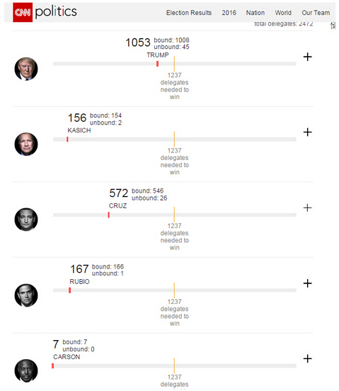 兩周過去后,在六個州的初選中川普全部獲勝。克魯茲徹底失去戰勝川普的可能性,而卡西奇更是在幾個月前就已經不可能勝選了。克魯茲的退選宣布共和黨建制派共抗“川寇”的計劃流產。也意味著共和黨無法再合法的阻止川普成為該黨的唯一候選人。