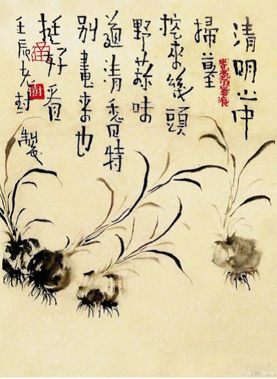 今天的画家和上一代画家有一个明显的不同,就是对于自我的关注和表现,略带有私密性,老树也不例外,比如在老树新出的清明节时的一系列作品中,有一对父子的形象,老树配诗:每年清明时节,父亲教我种菜。他说将来没钱,可以挑菜去卖。讲述的是自己童年和父亲的故事,可是在清明节这样一个思念故人的时节,你我都有着这样的故事,一下子触发观者的思考:哦,我逝去的爷爷也教过我。这样的共情是世人都有的感情。“看老树的画,经常能念出声音,有的时候还能会心一笑,这种观展的体验是可贵的。”徐斗对记者说道。