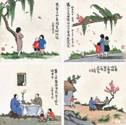 丰子恺生活小品(四幅)