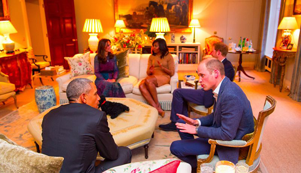 日前,英国威廉王子夫妇在其居住的肯辛顿宫设晚宴招待美国总统奥巴马和第一夫人米歇尔。这是威廉王子夫妇第一次在住所组织如此高规格的接待活动,他们希望为对方营造出自在、友好的氛围。