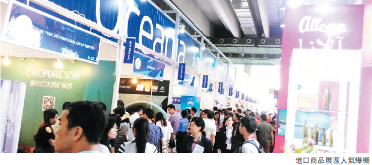 昨日,記者來到進口館區,進門第一站是澳門館,約有七八家食品企業參展,往日與澳門館相鄰的香港館未見蹤影,而是新西蘭、澳洲等商品展示區。