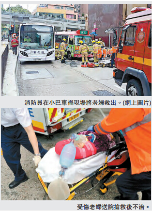 昨午1时18分,涉案小巴由太子道西西行左转入洗衣街时,将一名由右边安全岛步出横过马路的老妇撞倒,再卷入车底昏迷,司机察觉停车报警,消防员到场将伤者救出送院,惜抢救後死亡。受事件影响,洗衣街南行近太子道西全线一度要封闭,交通挤塞。