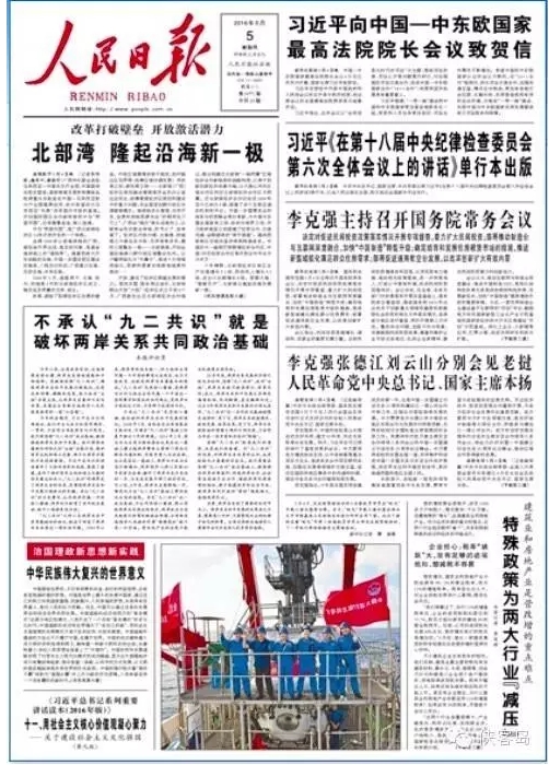 有意思的是,蔡英文勝選后即接受偏藍的《聯合報》專訪(而非偏綠的《自由時報》之類),專門談到兩岸關系,要求大陸多釋放一些善意。而心領神會的《聯合報》立馬摘編出來,放在頭版頭條足量處理,向對岸遞話的意圖活生生刻在臉上。如今5·20沒幾天了,大陸黨報頭版外加由4日晚的《新聞聯播》和新華社提前報道,三架馬車式的高規格大陣仗強力度,自然某種程度上給足了相關人員面子——正所謂來而不往非禮也。