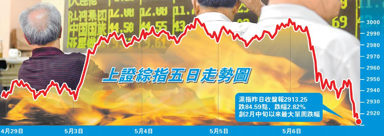 本周最后一个交易日,A股遭遇重挫,尤以「中小创」表现疲弱。其中,上证综指以2998.40点小幅高开,早盘一度冲破3000点;但上摸3003.59点后开始一路下行,尾盘以接近全天最低点的2913.25点报收,较前一交易日跌84.59点,跌幅达到2.82%。