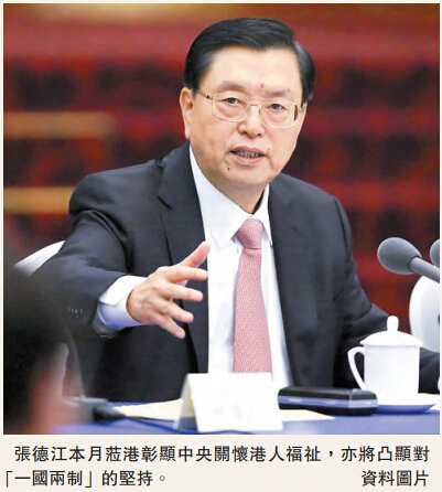 昨早,劉兆佳出席電台節目時表示,中央領導人已多年未曾來港,他個人認為今次張德江委員長蒞港有四個目的:首先,中央希望藉是次蒞港表達對港人福祉的關懷;其次,凸顯中央堅持「一國兩制」的立場,而香港在發展過程中仍須嚴格遵守過去的規則;第三,強調國家發展對於香港的重要性;第四,強化港人對自己的信心,因香港具有「一國兩制」制度優勢,仍可在國家新一輪發展中扮演重要角色。
