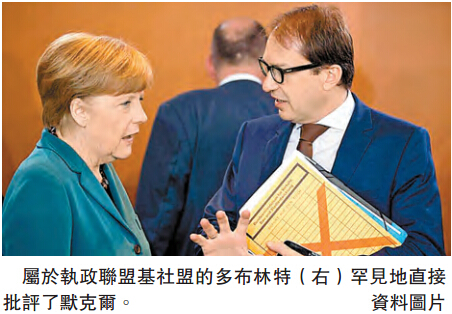 但在難民危機中,聯盟黨「渾然一體」的默契被撕裂。基社盟主席、巴伐利亞州長澤霍夫逐漸成為默克爾難民政策的主要反對者之一。這次多布林特反水,以及日前默克爾與內政部長德邁齊埃關於是否關閉意奧邊境的表態前后矛盾,則凸顯默克爾領導下聯盟黨乃至本屆內閣的離心離德再度升級。