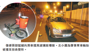 【香港商报网讯】记者周伟立报道:长沙湾前晚近午夜发生单车交通意外,一名青年骑着名贵意大利名牌单车驶经长沙湾通州街与兴华街十字路口时,与一辆平治房车相撞,当场人仰车翻倒地重创昏迷,送院抢救后命危;房车司机事后被捕,警方不排除有人冲灯肇祸。