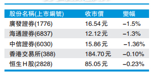 君阳证券行政总裁邓声兴表示,港股表现一般,料在两万点心理关口争持,初步有支持,如果成交不增加,短期内港股料在两万点左右穿梭为主。中资金融股普遍向下,国寿(2628)及平保(2318)分别微跌0.2%。建行(939)及工行(1398)分别跌0.4%及0.5%。券商股方面,广发证券(1776)、海通证券(6837)及中信证券(6030)分别跌1.5%、1.3%及1.3%。
