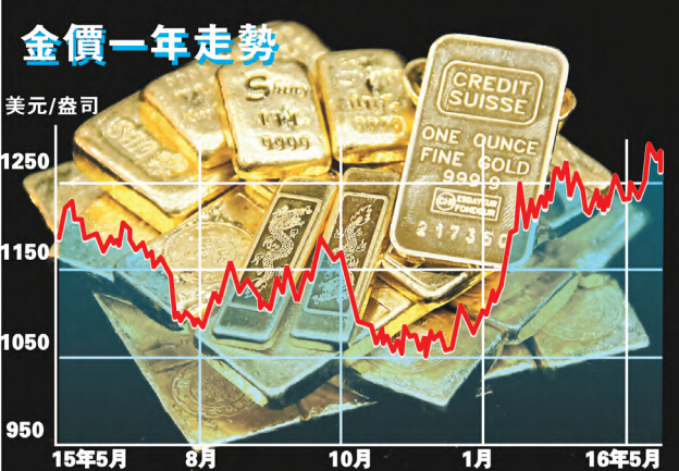 金价自美国去年12月进入加息周期後,大肆上升,由每盎司1047美元一路杀上近期高位1303美元,累升24%。黄金强势主要是因全球经济不稳,市场相信在加息步伐加速前,仍能维持升势。