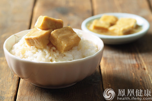 腐乳又被称为“中国奶酪”,传统中医认为腐乳性味甘、温,具有活血化淤、健脾消食等作用。现代营养学证明,豆腐在经过发酵后会得到更多利于消化吸收的必需氨基酸、烟酸,钙等矿物质。尤其发酵还能得到一般植物性食品中没有的维生素B12。