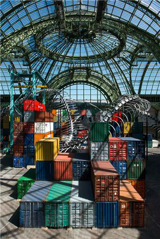 艺术家黄永砅的大型装置作品是以“帝国”为主题,由一个8座岛屿造型的彩色建筑结构为主体,贯通其中的是一个250米长的巨型海蛇骨架,整体结构的阴影部分将与Nave中殿上方的玻璃圆顶的金属骨架结合。黄永砅在创作时将工业时代的杰作“大皇宫”作为一个载体,去探索世界文明的改变,并对经济世界里人们的野心、欲望,以及战争的暴力进行冷静思考,整件装置堪称当今经济世界体的符号景观。