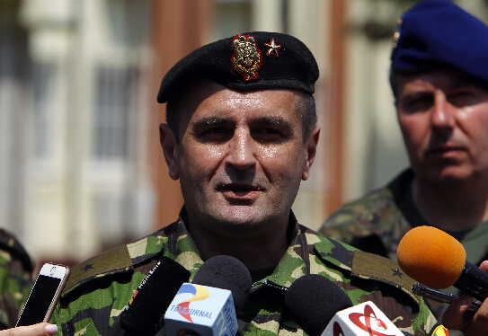 5月11日,在罗马尼亚首都布加勒斯特,北约东南欧指挥部司令、罗军准将奥维迪乌-利维乌·乌伊弗莱亚努对媒体讲话。