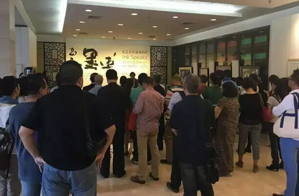 距离张志东先生的墨述画展已经过去半年了。上一次,在招商局博物馆几近透明的素雅大堂中,我们从字画中看一种清冷写意。本次,文博会分会场歧聚活动中,我们将这些作品迎进古色古香的茶台禅室,暗香浮动间,换一种心境,看一场时代之变。
