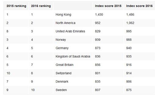 該調查報告顯示,中國香港的上網率仍排名全球首位,北美和阿聯酋分居二、三位。在亞太地區,排名最靠近香港的是新加坡和澳大利亞,但這兩個國家的排名均未進入前十。
