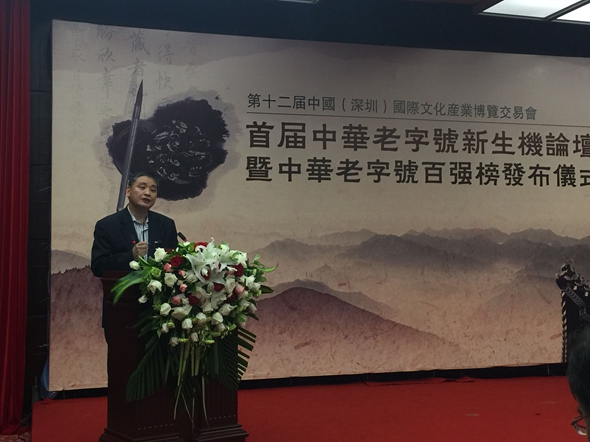 本屆中國(深圳)國際文化產業博覽交易會首屆中華老字號論壇由深圳國際文化產業博覽交易會有限公司、全球商報聯盟、香港商報主辦,除揭曉中華老字號百強榜并舉行頒獎儀式外,還特邀國家重點學科文藝學學科帶頭人、澳門城市大學特聘教授、中國人民大學文化創意產業研究所所長金元浦先生和著名紀錄片制作人、深圳越眾影視公司董事長鄧康延先生作演講嘉賓,聚焦中華老字號企業的發展熱點,特別是新經濟時代背景下,如何借助“互聯網+” 實現跨越發展。