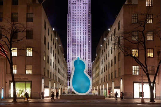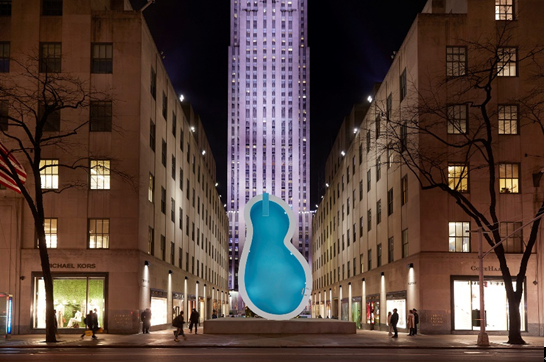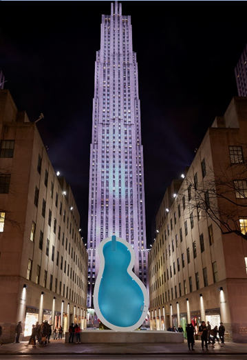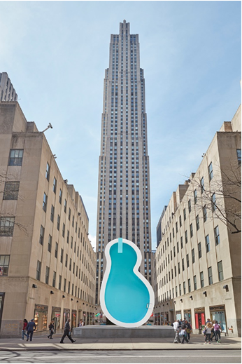 这个春季,当你经过纽约第五大道的洛克菲勒中心(Rockefeller Center)入口,将会不期然被一个直立的蓝色游泳池所震撼,让你一时间忘记自己身处于美国的顶尖奢侈品购买区,因为它马上要把那些路易·威登、蒂芙尼、Bergdorf Goodman百货、苹果专卖店的店面都比下去。