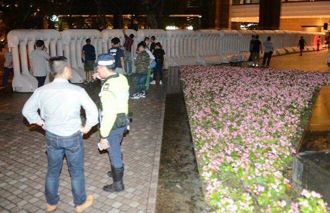 警方深夜架起水马墙