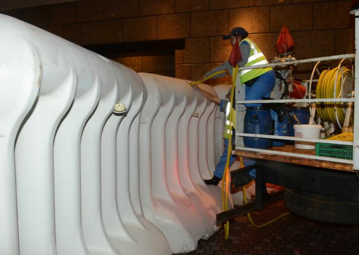 工人为水马注水
