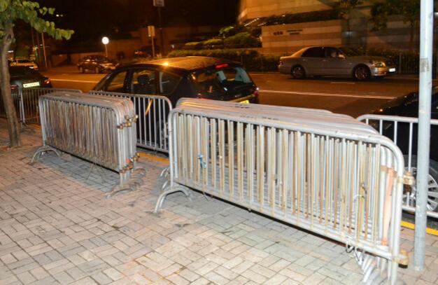 另外,警方在湾仔告士打道多条天桥亦放置了多重铁马,保安严密。