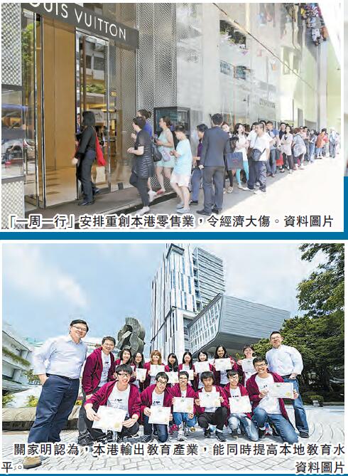 「自由行」为香港带来的「红利」看似走到尽头之际,哪些未被发掘的领域,可带动经济再次腾飞?关家明认为,在金融、房地产、旅游业以外,发展教育、废物处理和医疗等公营服务,既可服务港人之余,更可输出海外,为香港经济注入新动力。