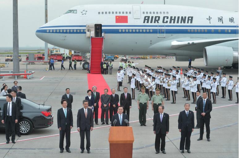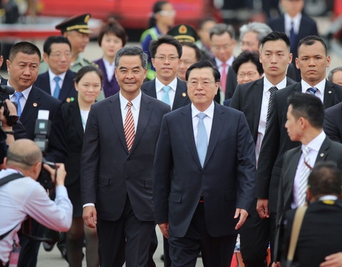 張德江專機抵港 梁振英到機場迎接