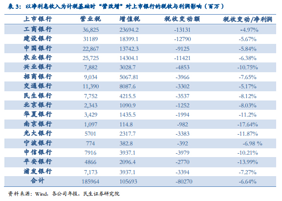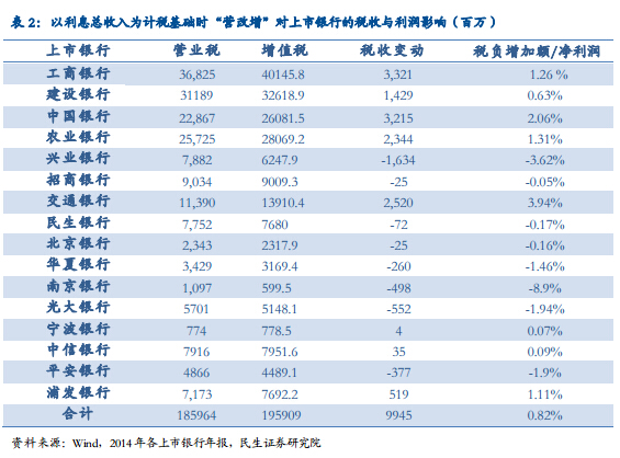 關于營改增對16家上市銀行稅負的影響,民生宏觀分析師朱振鑫作出了較為全面的測算,并得出了以下結論: