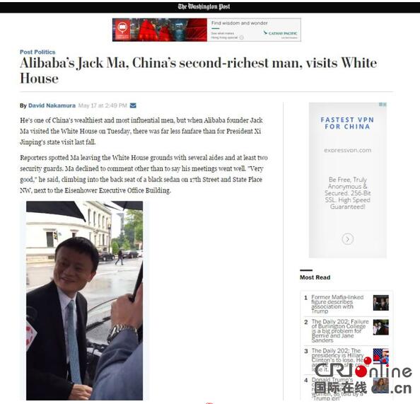 据《美国华盛顿邮报》报道,美国当地时间5月17日中午,马云在白宫跟奥巴马进行了一场会谈。