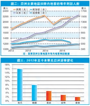 上周在《如何面對旅業轉衰?》(2016年5月11日《香港商報》A2版)一文中,略略比較過香港與其他亞洲區的吸客(旅客)能力。常言強港元會趕客,看看圖一,由2012年安倍上任日本首相後大力推行放水政策至今,撇除內地客,訪港旅客人數持續下滑。同期,美國因為炒收水而持續升值,連帶港元兌其他貨幣都一直走強,提供了一個好原因來解釋強港元與旅客跌的關係。
