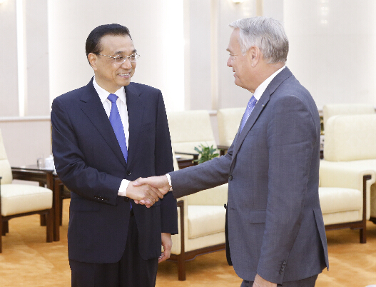 国务院总理李克强16日在人民大会堂会见来华进行正式访问的法国外长艾罗。