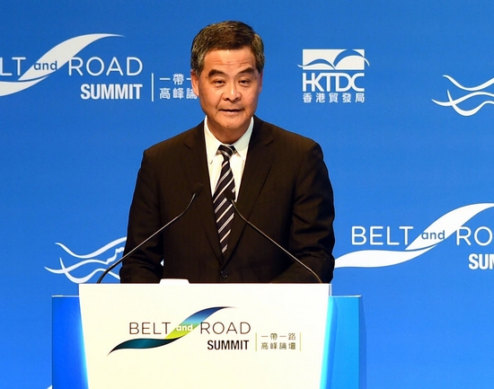 「一带一路」高峰论坛早上在湾仔会展揭幕,行政长官梁振英致辞时表示,非常感谢国家支持香港参与「一带一路」,香港结合「一国两制」优势下,能作为内地与世界各地的超级联系人。