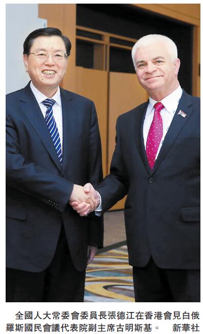 【香港商报网讯】全国人大常委会委员长张德江昨日趁出席「一带一路」论坛期间,会见多位参与论坛的各国政要,包括白俄罗斯国民会议代表院副主席古明斯基、马尔代夫议长玛斯赫等人,各国政要均乐见「一带一路」有助扩大东西方的联系。