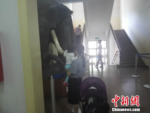 探访:自然博物馆内儿童攀爬围栏 触摸大象模型
