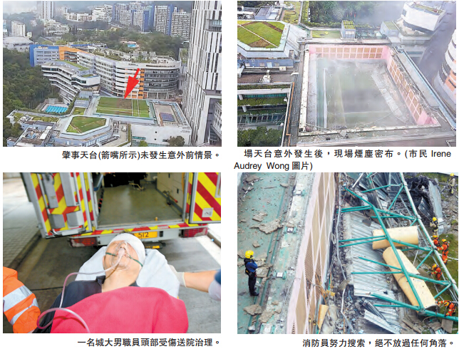 屋宇署高级屋宇测量师郑家兴指出,经初步视察显示,场馆未受波及的其他部分,整体结构并无明显危险,将会继续跟进事件及清理现场。至於是否绿化天台过重,及是否与钢筋生锈有关,他则拒绝评论,需要翻查纪录,作进一步调查及了解。