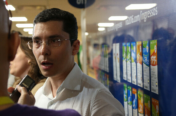 5月20日,里约奥组委门票总监多诺万·费雷蒂在发布会后接受采访。