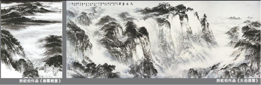 許欽松先生是當代山水畫壇的代表性人物,多年以來,他在山水世界呈現了一個令人印象深刻的藝術世界。其筆下的山水氣勢磅礡,壯美遼遠、雄健蒼茫。他既繼承了嶺南畫派的精神,又追隨時代、立足創新,致力於把傳統與當代有機銜接。他把黑白灰組合發揮得淋灕盡致,於簡潔之中滲入設計元素,大山、大水與飄渺的雲氣等具象轉換為帶著音樂旋律的山水意象,開創了寫實與移情共生的大山水畫境界。