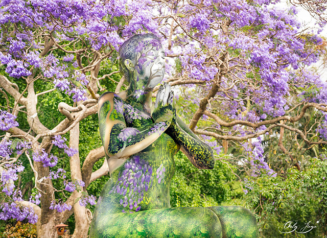 在过去的三年里,Orly Snir 创作人体彩绘摄影将人与世界联系在一起——强调我们与大地的内部牵连。Snir 认为从分子的角度来看,我们的想法、我们周边的东西和我们自身都是相互紧密联系在一起。