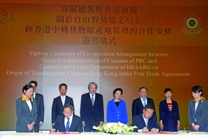 【香港商報網訊】記者葉佩瑜報道:香港海關關長鄧忍光與海關總署署長于廣洲昨日在香港舉行業務聯繫會議,就《自由貿易協定項下經香港中轉貨物原產地管理》簽訂合作安排,進一步便利經香港中轉至內地的貨物,以享有內地的關稅優惠,以加強香港作為區內物流樞紐的地位,並促進香港商貿物流業於「一帶一路」帶動下的發展。