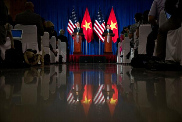 23日,奧巴馬與越南國家主席陳大光一起出席新聞發布會